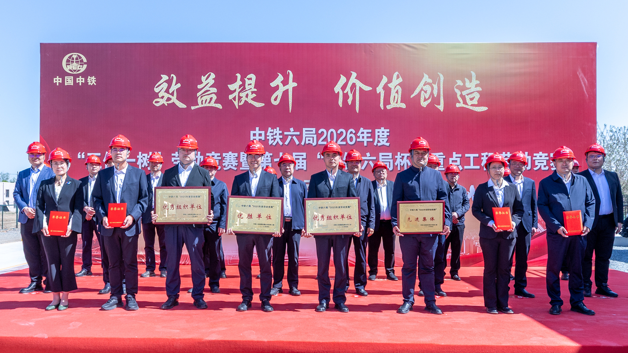 4月20日,中铁六局2026年度“五保一树”劳动竞赛暨第七届“中铁六局杯”重点工程劳动竞赛启动仪式,在北京公司市郊铁路东北环线工程项目部举行。本次竞赛以“效益提升,价值创造”为主题,旨在充分调动职工积极性,凝聚攻坚合力、团结拼搏奋斗,确保高质量完成年度各项目标任务。