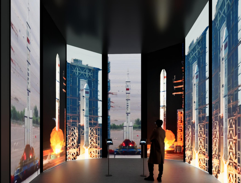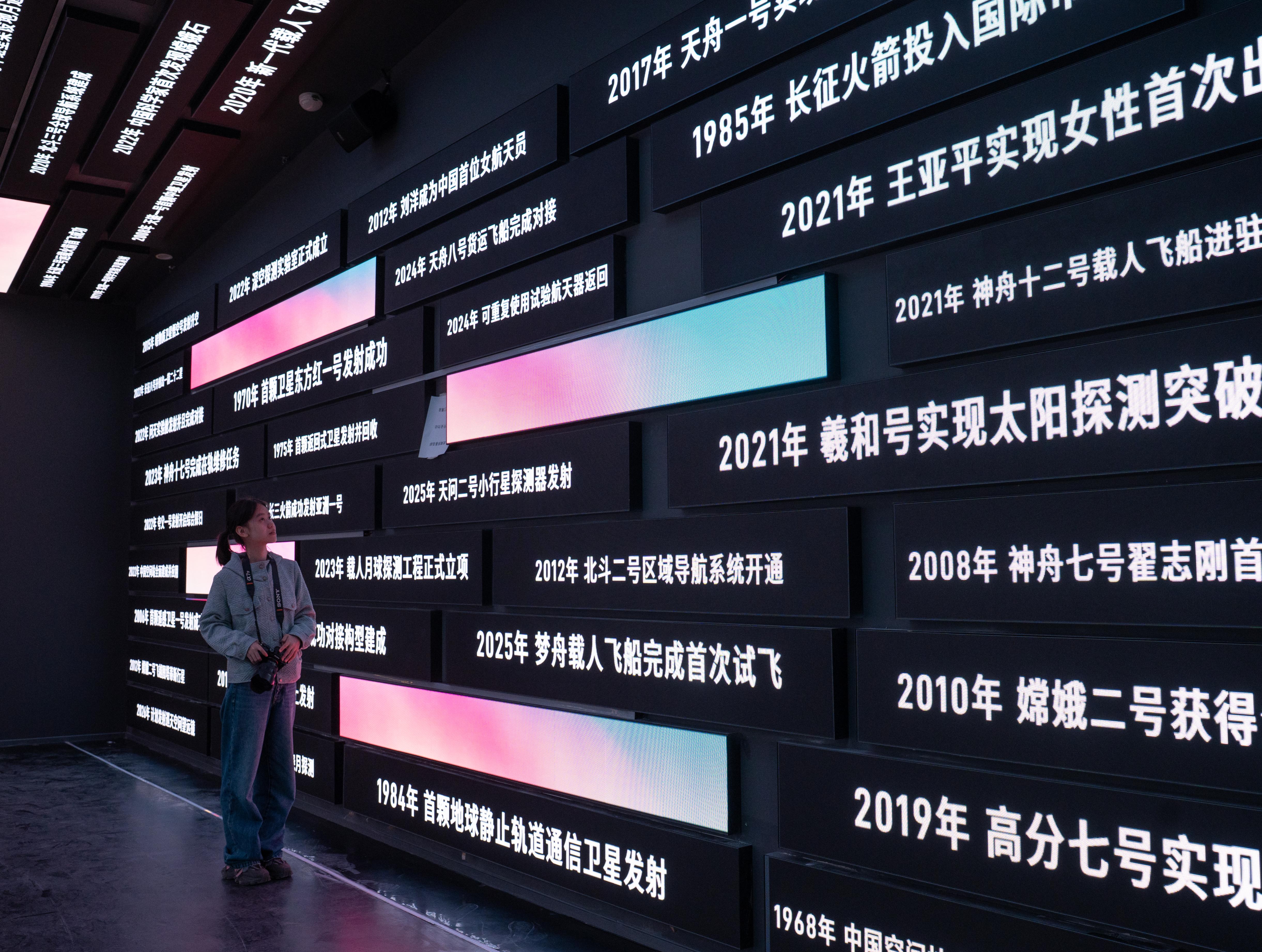 由100个中国航天里程碑事件组成的“时空隧道” 中国(北京)航天科学中心供图